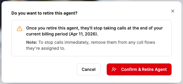 Retire an agent from your Agent list by accessing Manage Subscription. Retiring an agent means that you no longer need them. You can change your mind and bring them back until the next renewal date.