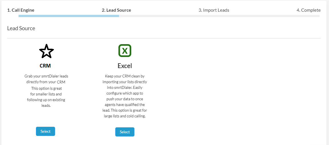 Follow the on-screen prompts to choose and upload your lead list. smrtDialer accepts .csv, .xls, and .xlsx files