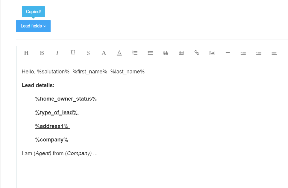 Here, from the Lead fields, you can simply select tags from the drop-down menu or just edit your Script by typing the information/requests you need from your lead in the box below.