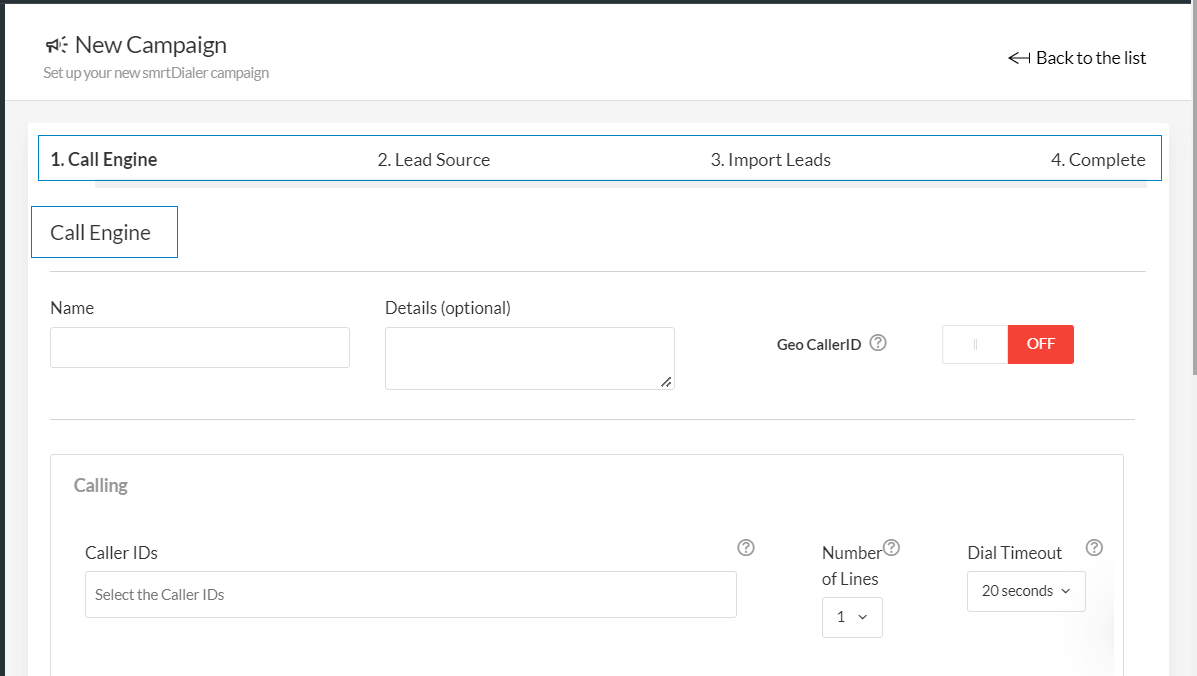 โ Set the Call Engine Settings - That you already determined based on your campaign strategy and assets. These can be edited later from the Campaign Settings screen