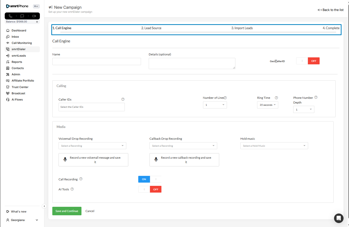 โ In Step 1, you set basic Call Engine Settings, which now appear in the first tab of your Campaign Settings. You can update/edit these if needed.