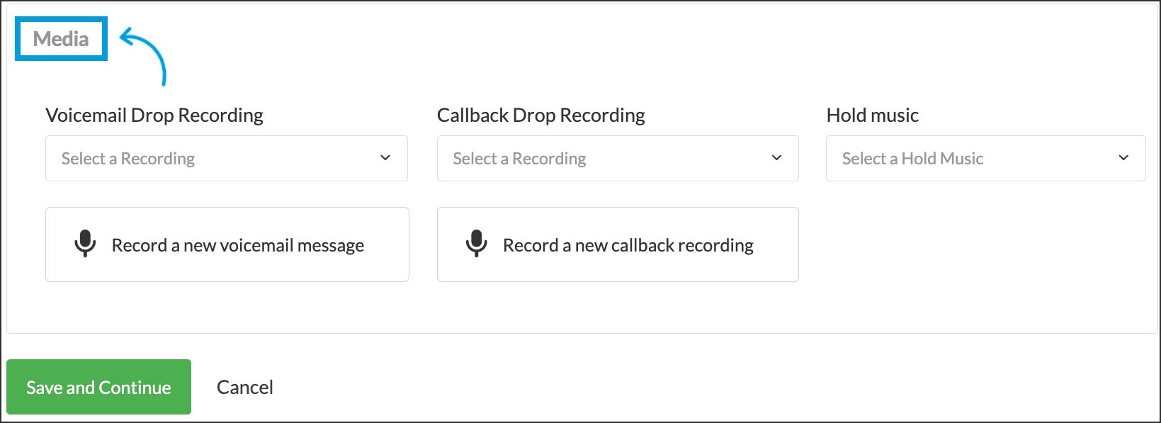 Recordings - including Callback Drop, Voicemail Drop, and Hold music (for Pro users only)