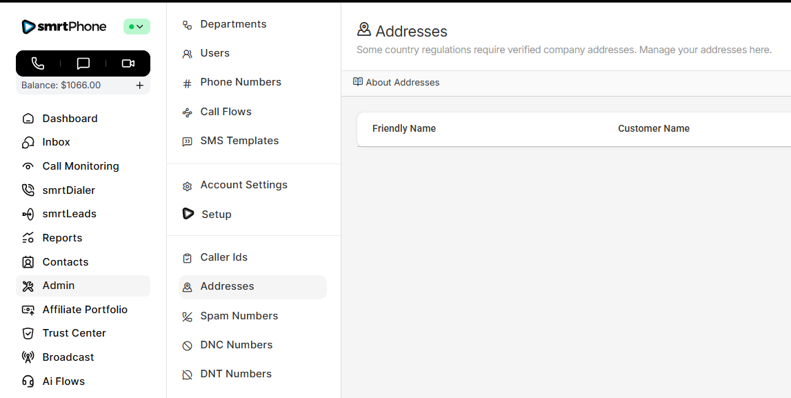 Some countries and regions require verified addresses to purchase a number. This is where you manage all of your addresses.