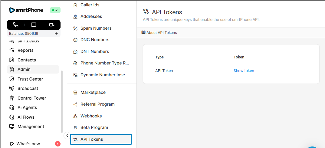 Your smrtPhone API token is a unique key specific to your smrtPhone account.