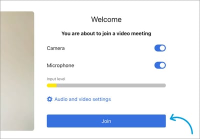 Once ready to join, choose if you want to use the camera and the microphone. They can be toggled off at any point during the video call and even replaced with other devices.