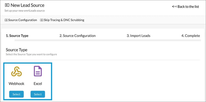 This type of source configuration is based on uploading a list of leads in .xlsx, .xls, or .csv file format.