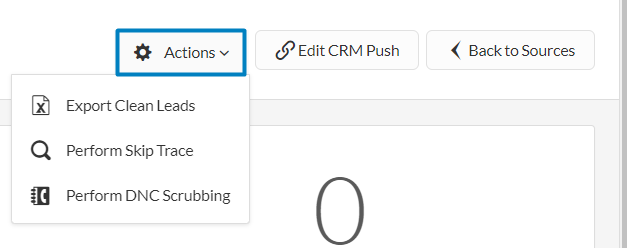 In case, for any reason, in particular, you did not select the Skip Trace or the DNC Scrubbing option while configuring the source, you can do this now, from the "Actions" button.