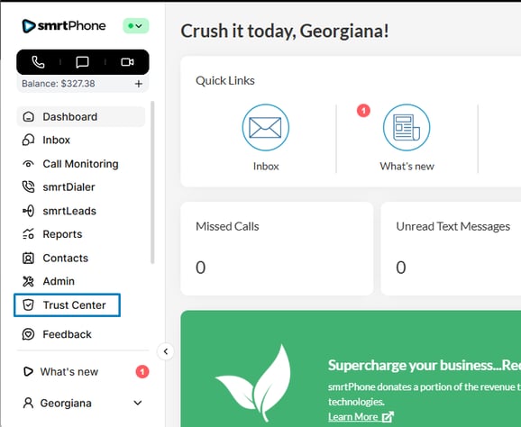 Only account Owners and Users with Trust Center permissions have access to submit A2P 10DLC registrations.
