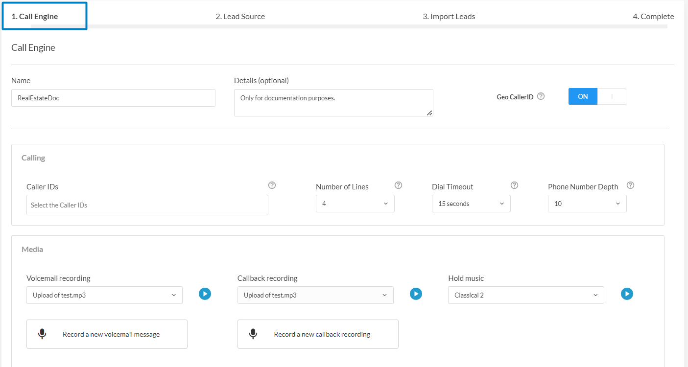1. Call engine configuration: