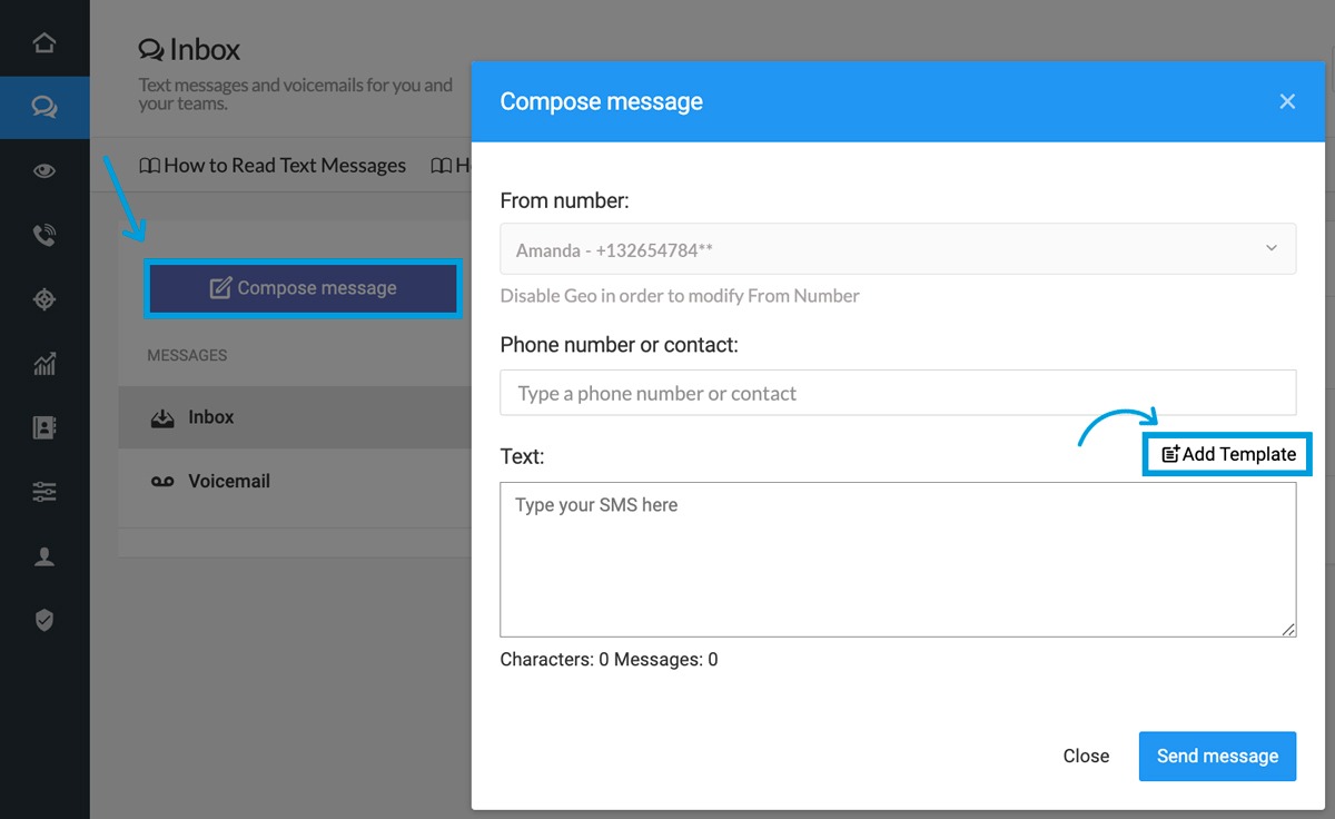 If you want to use the SMS Templates in the Web App, you can access the Dashboard Inbox tab. This feature is currently available only when composing a new message.