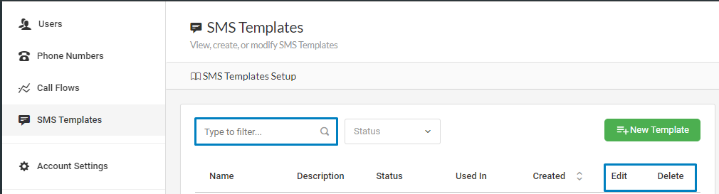 Use Filters and Statuses to find specific templates you've created, Edit your templates, or Delete unwanted templates, using the action buttons.