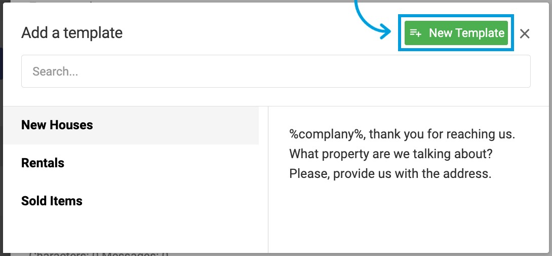 If you choose to create one, click the green New Template button, and in the newly opened tab, compose and save the template you want to use in this conversation.