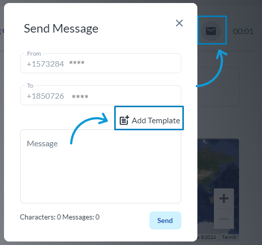 To use the templates while on an active smrtDialer Campaign, hit the Message icon and then select one of the templates you created for smrtDialer.