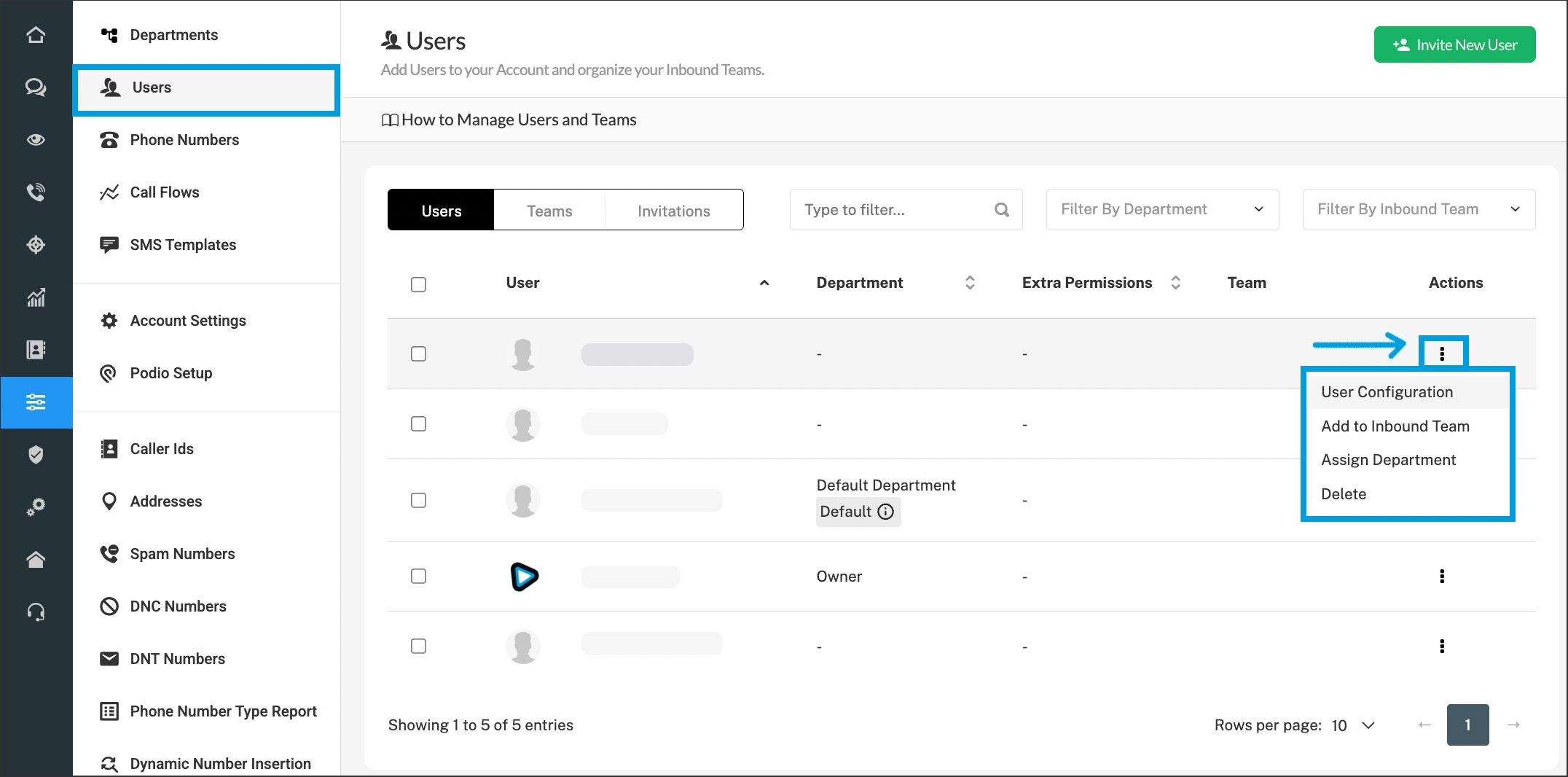 If you want to find your VoIP username and password, all you need to do is to head over to Admin > Users and click on the little settings icon located under the name of the user.