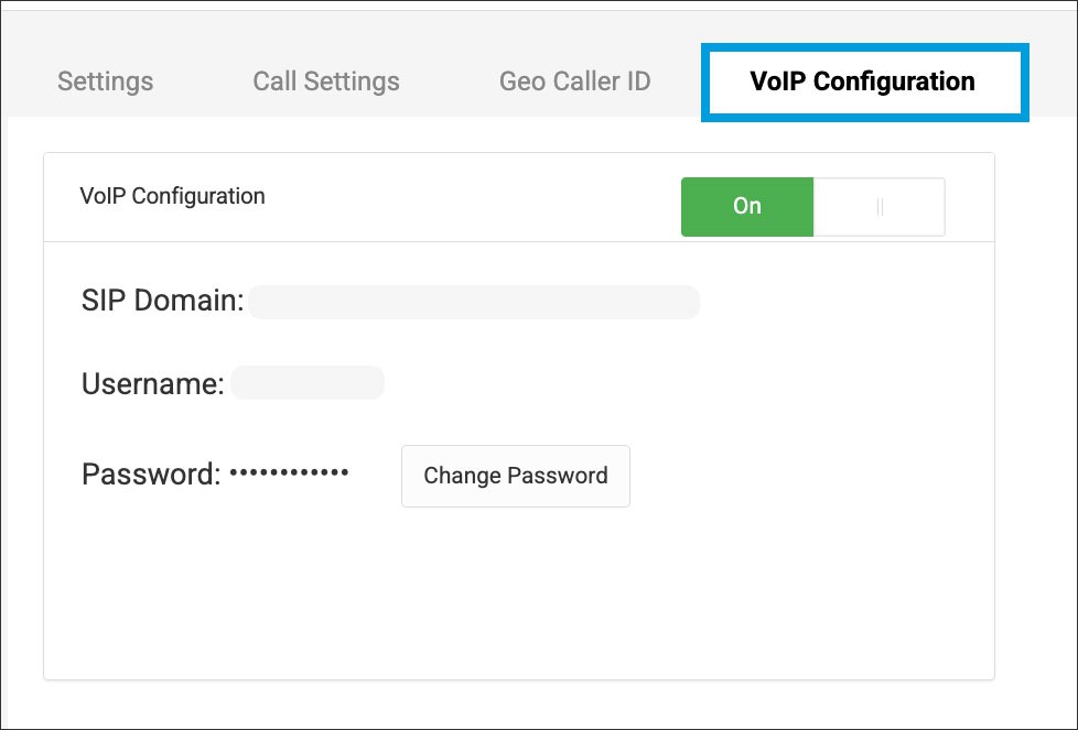 In the newly opened window, you can find the VoIP configuration with username and password. You can also change the password by clicking the Change Password button.